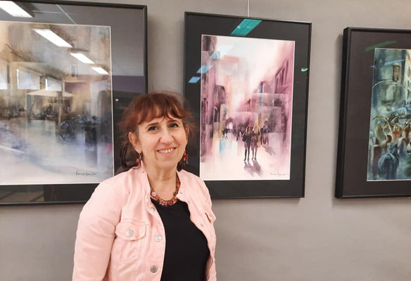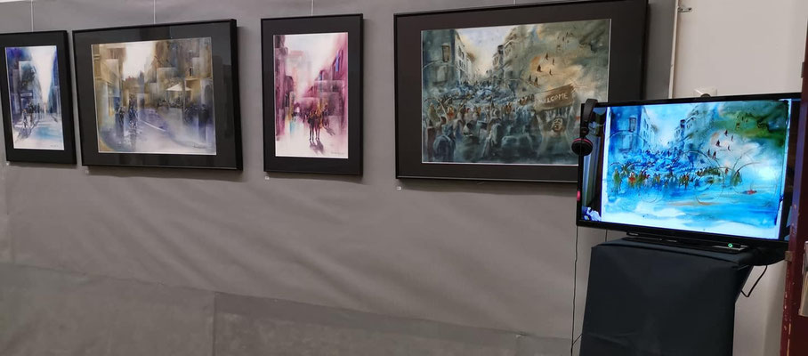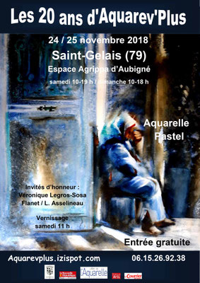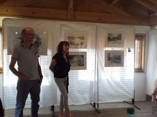 Vernissage de l'exposition personnelle à Magny les Hammeau. Exposition organisé par l'association Eau et lavis en novembre 2017
