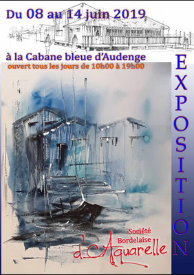 Exposition de la Société Bordelaise d'Aquarelle à La cabane bleue d'Audenge. juin 2019